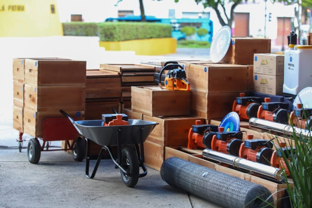En esta jornada, se otorgaron apoyos en especie que incluyen bombas de riego, mangueras, cajas apícolas, trajes de protección, herramientas de trabajo y materiales diversos, con el objetivo de mejorar las condiciones de producción y aumentar la capacidad operativa de las actividades agropecuarias, apícolas y artesanales.