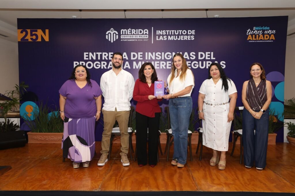 En el marco del 25N, Día Internacional para la Eliminación de la Violencia contra las Mujeres, la presidenta municipal Cecilia Patrón Laviada entregó la insignia “Mujeres Seguras” a 18 empresas que concluyeron su proceso de capacitación para atender situaciones de violencia y fortalecer la protección de las trabajadoras en la capital yucateca.