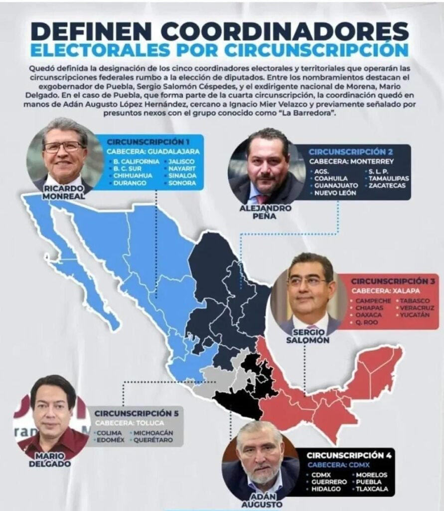 Más aún cuando la estructura de coordinación electoral de Morena queda en manos de cinco figuras clave: Ricardo Monreal Ávila, Alejandro Peña, Sergio Salomón Céspedes Peregrina, Adán Augusto López Hernández y Mario Delgado Carrillo.