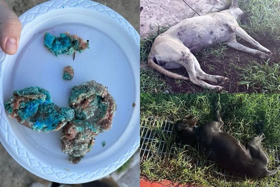 Preocupados, Evy y otros vecinos recorrieron las calles y descubrieron más animales sin vida, entre ellos un zorrillo. En su recorrido hallaron también varios recipientes con carne molida mezclada con veneno, esparcidos en distintos puntos de la colonia.