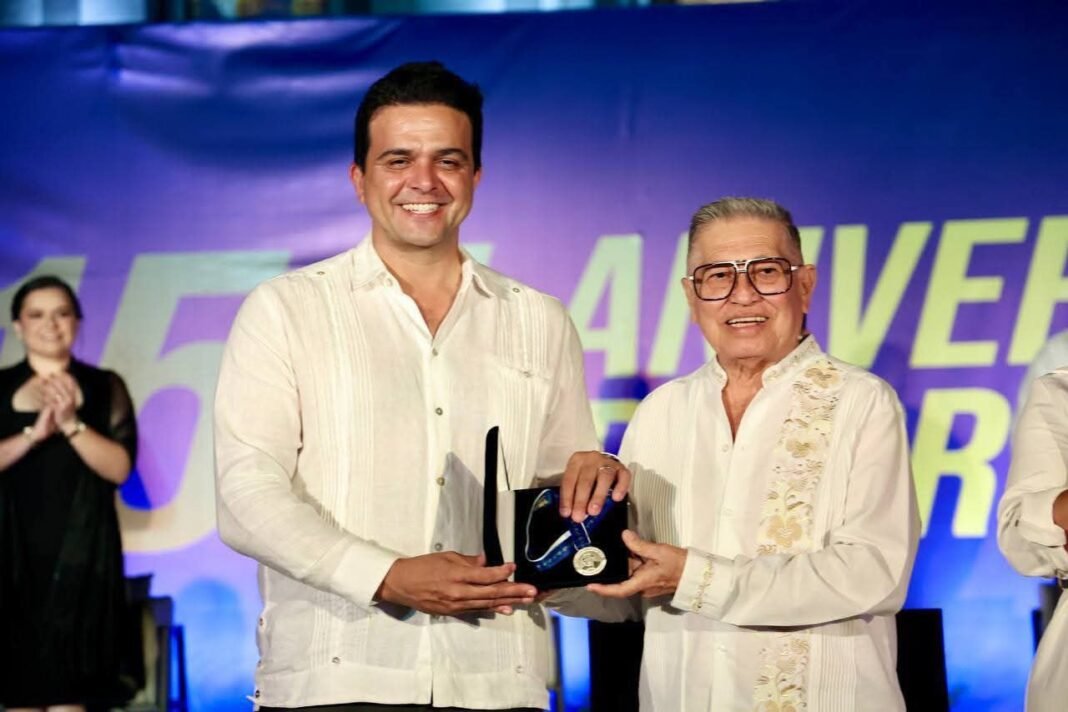 Durante la ceremonia, se entregó la Medalla de Honor “Juan Miguel Castro Martín” y el reconocimiento como Ciudadano Distinguido 2025 al maestro Ernesto Muñoz López, en el marco del 154 aniversario de la fundación del puerto de Progreso.