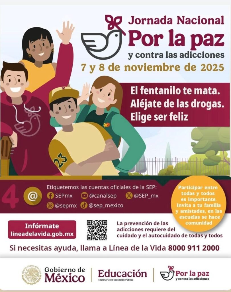 💬 Este 7 y 8 de noviembre se celebrará la Jornada Nacional por la Paz y Contra las Adicciones con el objetivo de concientizar y prevenir el consumo de drogas en la juventud, de manera especial entre estudiantes.