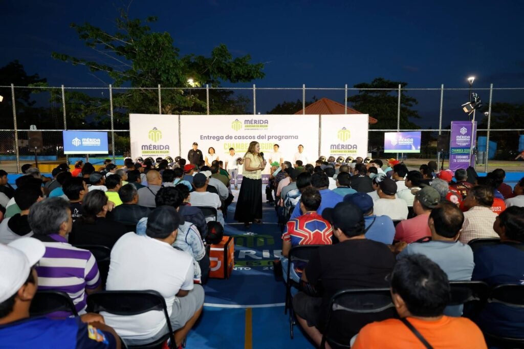 En un esfuerzo por reducir los índices de siniestralidad vial y proteger el patrimonio de las familias trabajadoras, la alcaldesa de Mérida, Cecilia Patrón Laviada, encabezó la segunda entrega masiva de cascos con certificación DOT del programa “Chambea Seguro”.