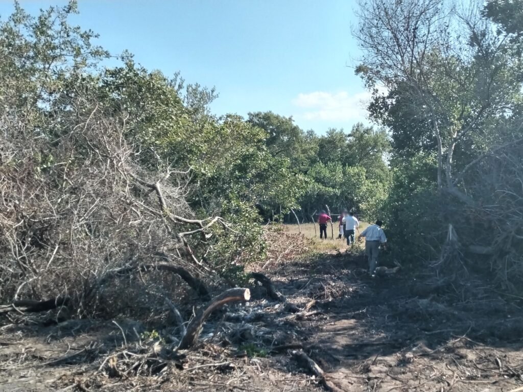 De acuerdo con el reporte oficial, las labores de desmonte fueron realizadas recientemente, ya que se localizaron restos de árboles y ramas acumulados en montículos para su secado, además de señales de uso de fuego.