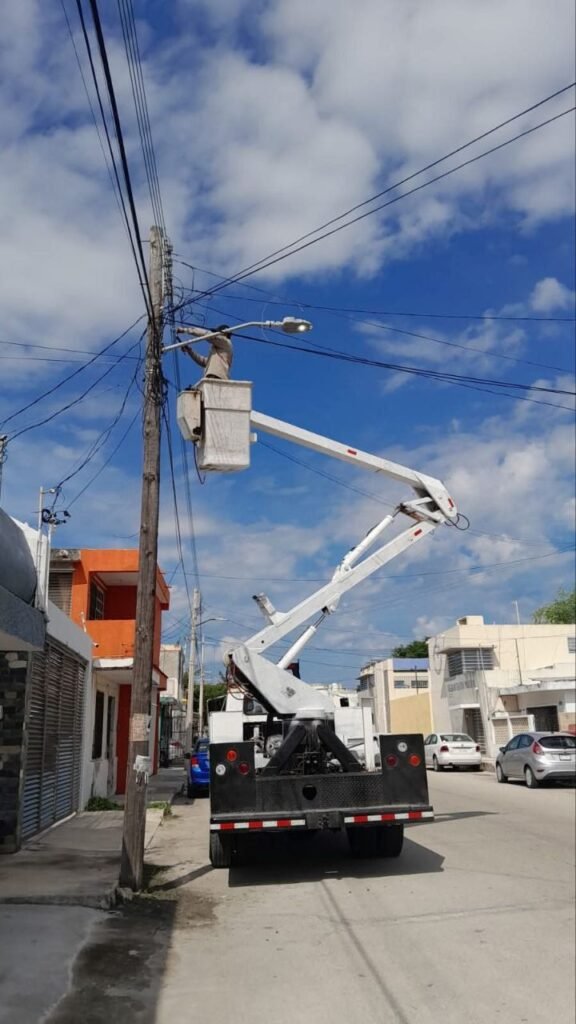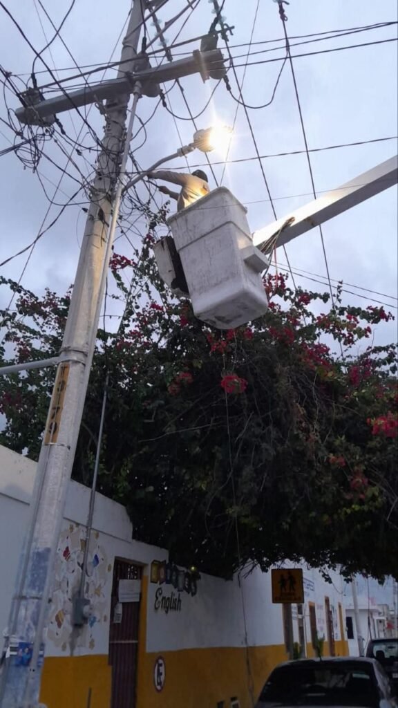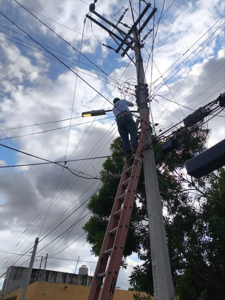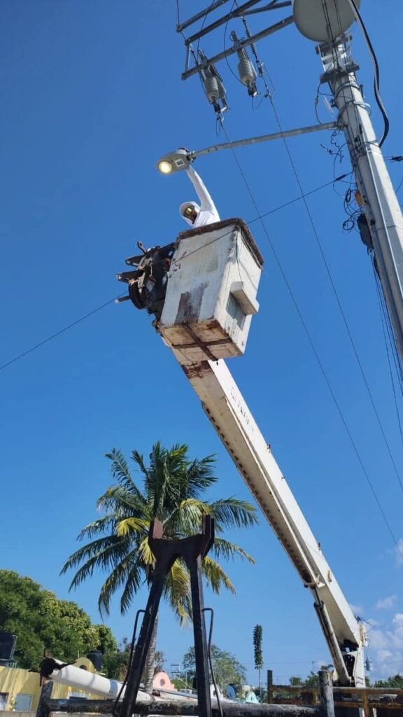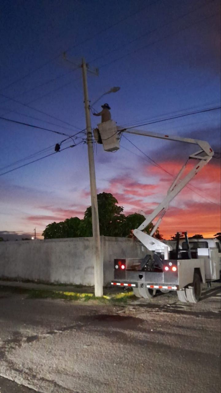 El alcalde Erik Rihani González, a través de las cuadrillas de la Dirección de Servicios Públicos, continúa reforzando la atención al alumbrado en la cabecera municipal y en las seis comisarías; recientemente, el personal laboró en el puerto de Chicxulub.