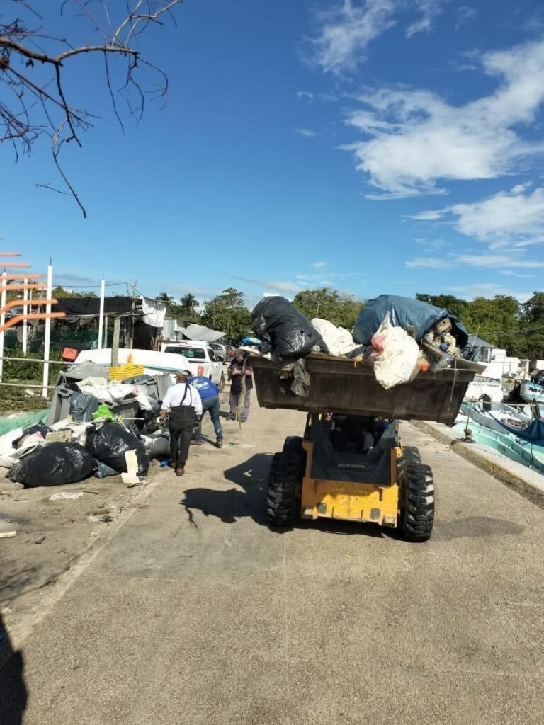 La Dirección de Servicios Públicos, por encomienda del alcalde Erik Rihani González, refuerza las labores de limpieza y mantenimiento en el refugio pesquero “La Caleta”, espacio donde mujeres y hombres de mar desarrollan su actividad diaria para el sustento de sus familias.