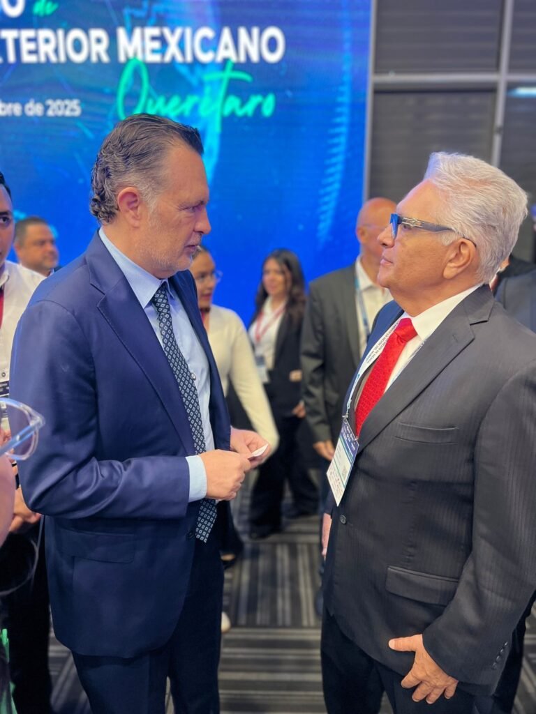 El encuentro reunió a empresarios, diplomáticos y servidores públicos del sector exportador, y fue inaugurado por el gobernador de Querétaro, Mauricio Kuri González. Durante la jornada de ayer jueves se llevó a cabo la mesa panel “La evolución del comercio internacional: una visión desde México”, en la que participaron Luis Rosendo Gutiérrez, subsecretario de Comercio Exterior de la Secretaría de Economía; Altagracia Gómez Sierra, asesora presidencial de Desarrollo Económico Regional y Relocalización, y Antonio Ortiz Mena, presidente del Comité Técnico de Estrategia T-MEC del Consejo Empresarial Mexicano de Comercio Exterior, Inversión y Tecnología (COMCE).